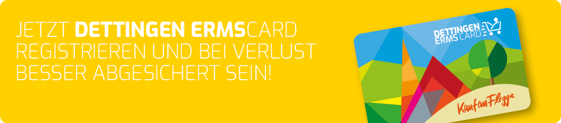 Mit der neuen DETTINGEN ERMS CARD sichern Sie sich zahlreiche Vorteile und Möglichkeiten. Das geht ganz einfach, denn die DETTINGEN ERMS CARD gibt es kostenlos bei allen teilnehmenden Geschäften und Ausgabestellen. Sie erhalten für Ihre Einkäufe bei den Partnern Boni oder spezielle Angebote.